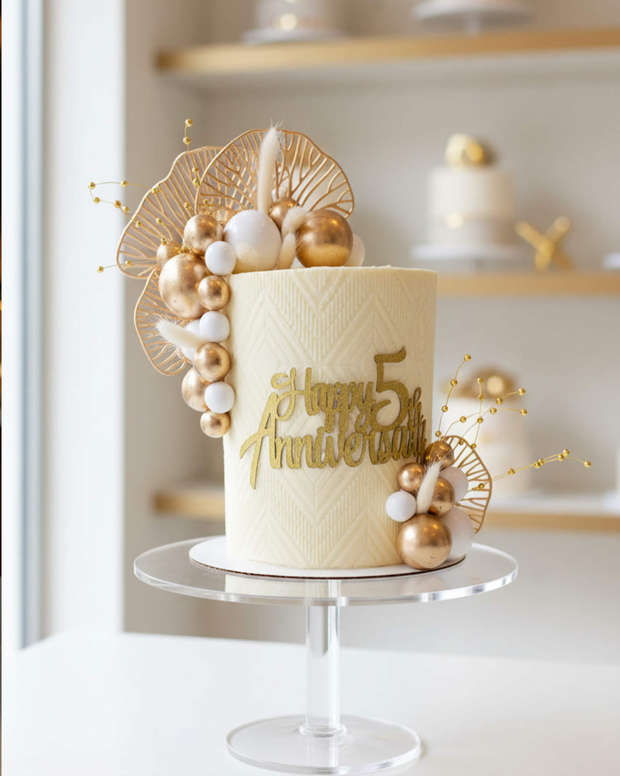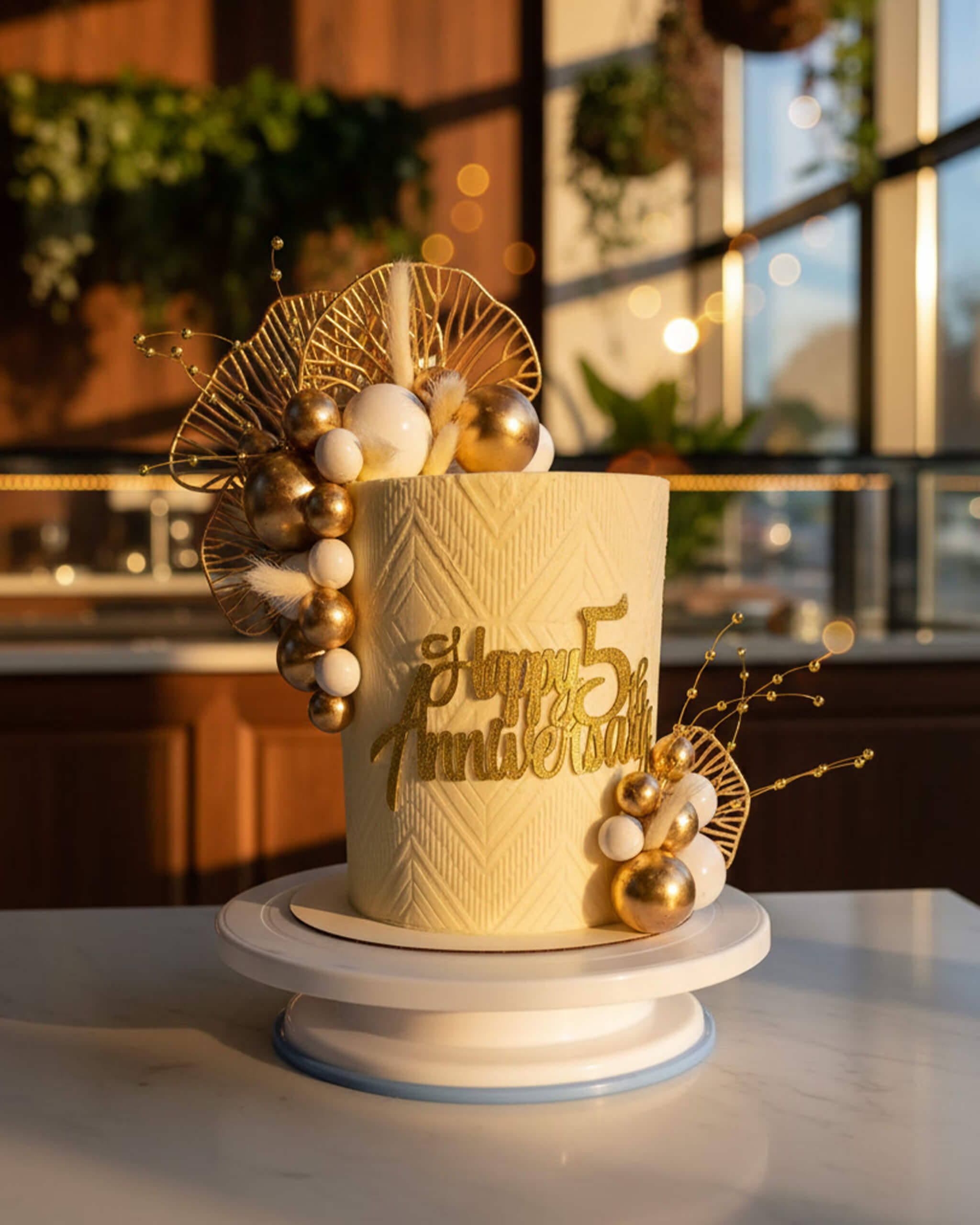 Celebrate your love story with our elegant Anniversary Cake – timeless, sophisticated, and effortlessly chic. Soft ivory (or your choice of color) with subtle textured patterns and a warm golden glow that feels luxurious yet understated, perfect for milestone moments.