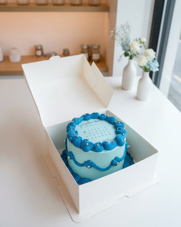 Personalized Calendar Mini Cake featuring a beautifully piped vintage-style buttercream design with your special date highlighted on top. Perfect for birthdays, anniversaries, proposals, baby announcements, or meaningful milestone celebrations.