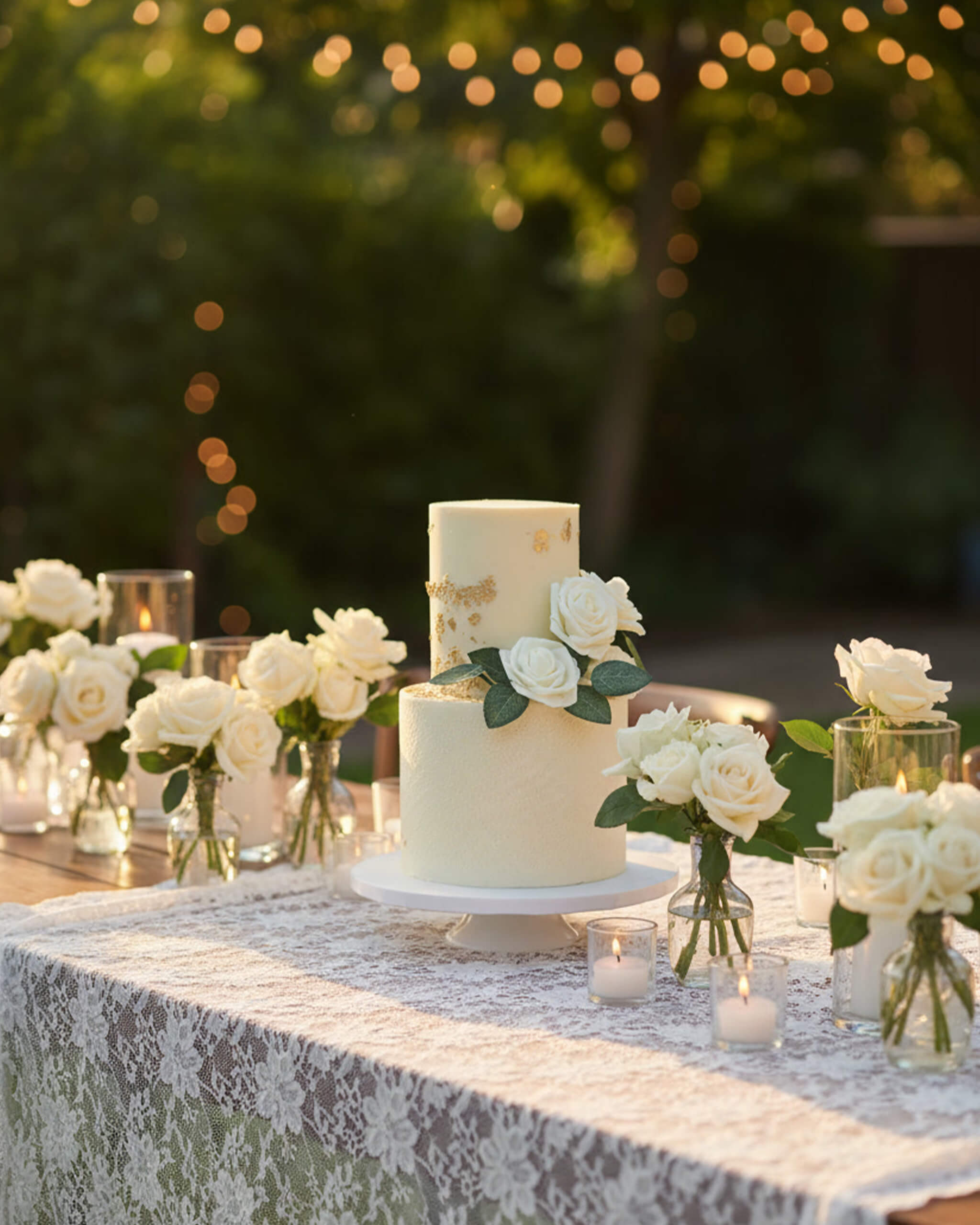 Timeless and effortlessly beautiful – our Classic Minimalist Wedding Cake is pure understated elegance. Soft ivory buttercream with a delicate textured finish, a whisper of edible gold leaf, and just a few perfect white roses and fresh greenery – nothing more, because it doesn’t need anything more.