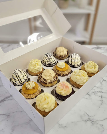 Available in dozen-, each box features a curated mix of our top-selling flavors — complete with matching fillings and paired buttercream frostings.