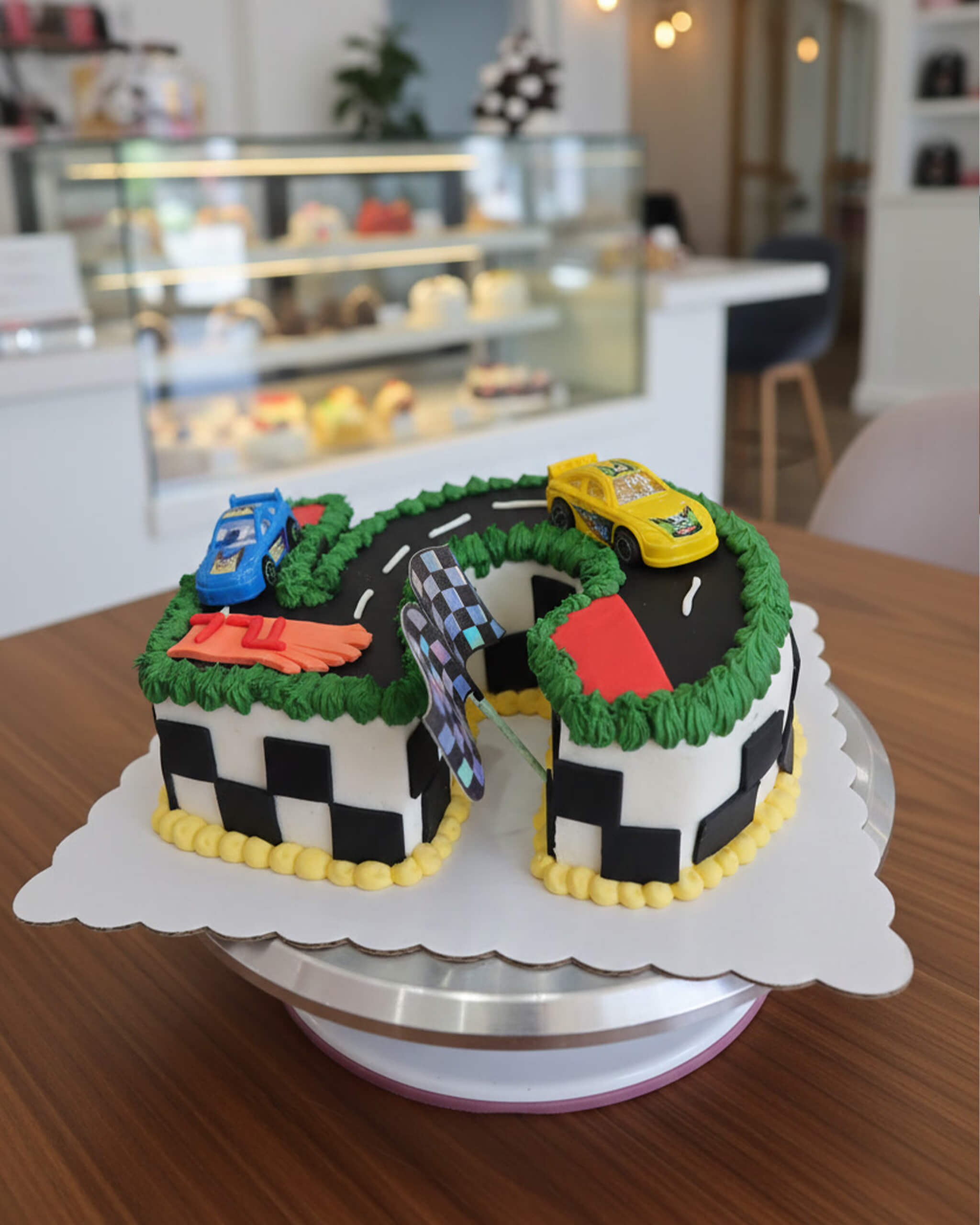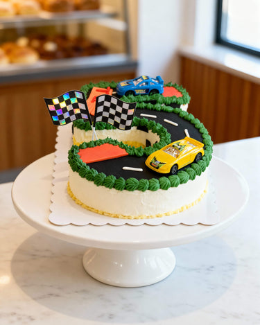 A fun and completely customizable cake sculpted into the celebrant’s age or special number. The top surface can be transformed into any theme you choose — racetrack with toy cars and checkered flags, unicorn garden, dinosaur landscape, superhero city, or anything else your little (or big) one loves.